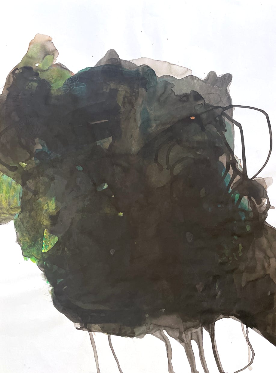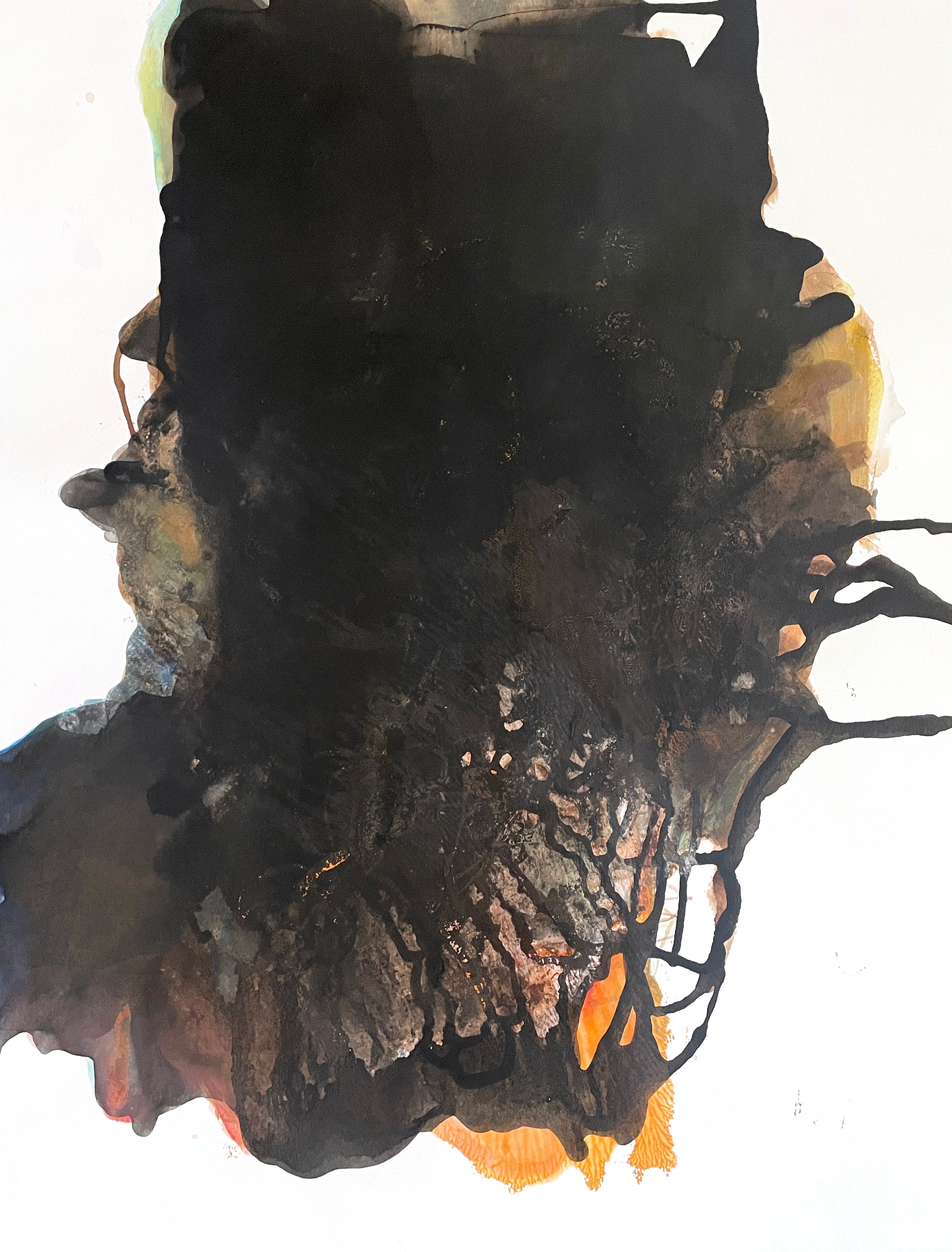 Peinture abstraite, encre, gouache, peinture industrielle et crayon sur papier, format 60 x 80 cm, 2021
